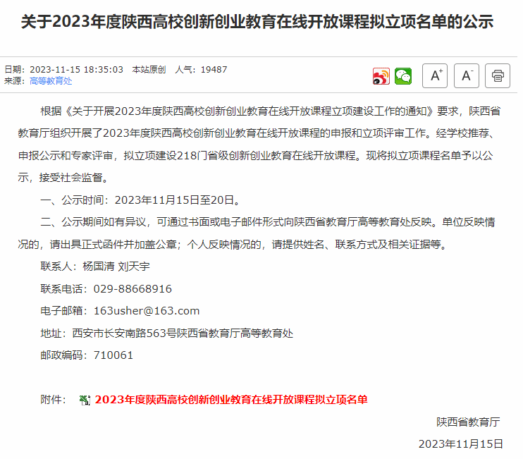 【喜报】我院两门课程获陕西高校创新创业教育在线开放课程立项