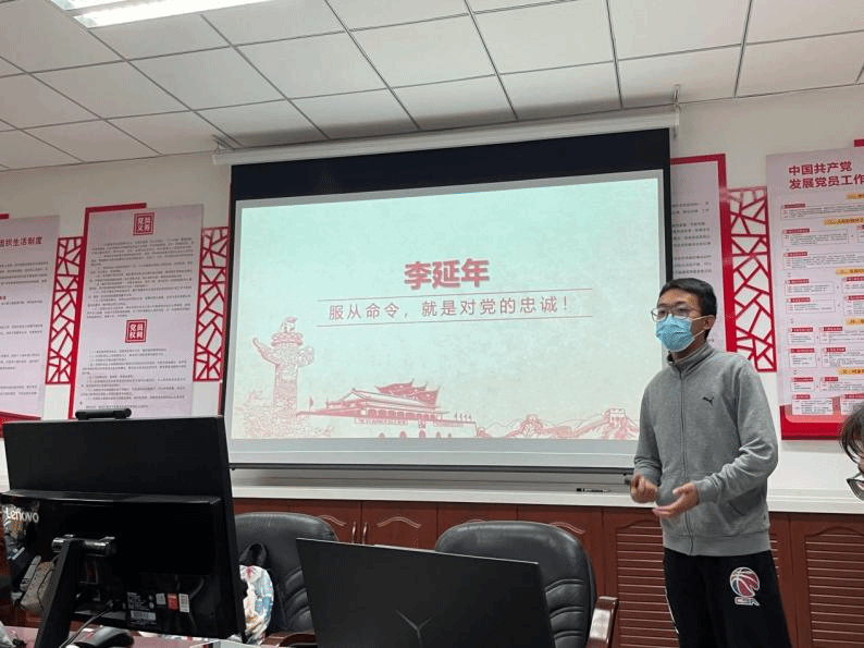 接着,电子信息学院08062110支部团员高博文带领大家回顾了李延年同志的英雄往事,展现了李延年对党绝对忠诚、为国舍命奋斗的战斗英雄本色,表示希望大家崇敬英雄、脚踏实地,努力成为共和国新世纪的英雄。