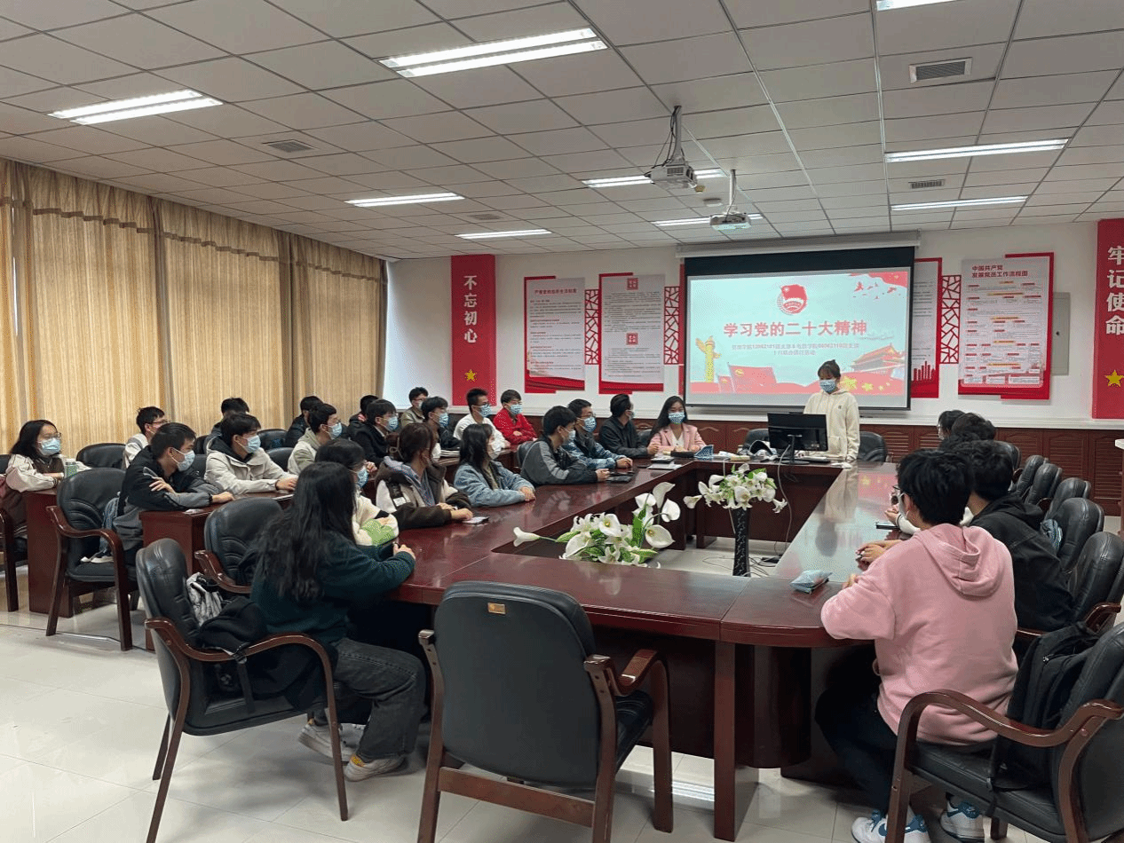 随后,主持人肖宇杰向团员们细致入微地介绍了中国共产党全国代表大会的历史背景、意义及作用,并重点介绍了此次党的二十大的大会主题和主要内容,带领团员们学习习近平总书记讲话精神。