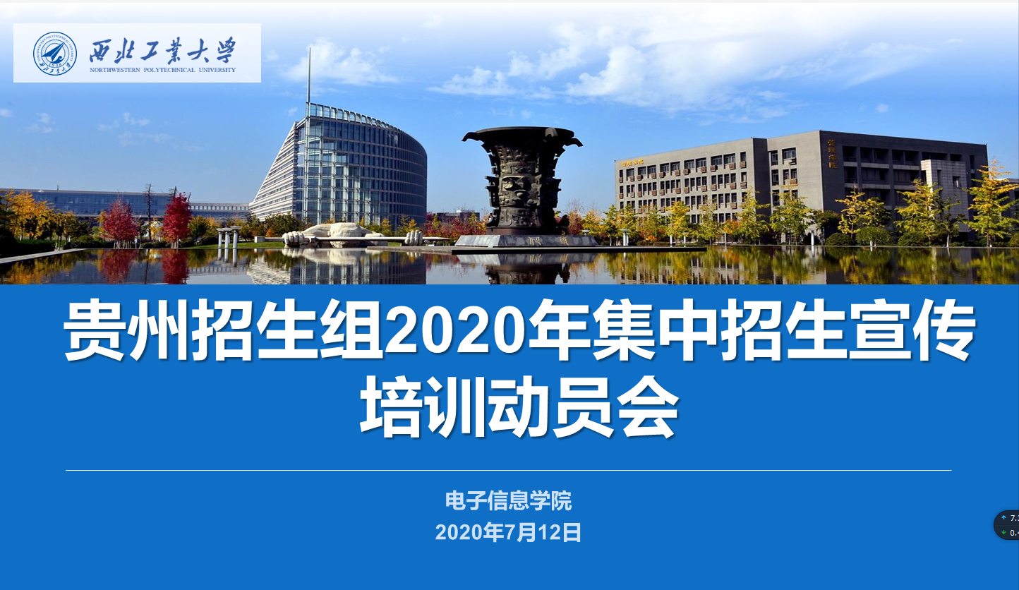通过本次会议,激发了招生组老师的工作热情,帮助招生组老师更好的掌握了今年新的招生政策变化和线上宣传工作要点。学院将继续加强与贵州省重点中学的沟通交流,创新招生举措,提质增效,完善招生宣传工作环节,为学校招生宣传工作助力,让更多优质的生源了解西工大,走进西工大。相信在全体招生组老师的共同努力下,一定会高质量完成贵州省2020年本科招生宣传工作!
