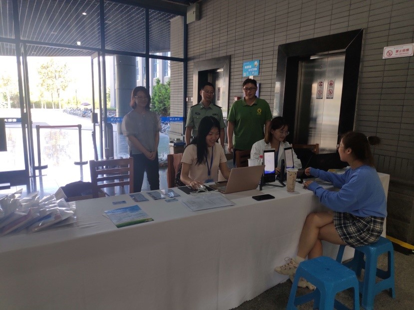 英国上市公司官网365党委副书记彭亮来到现场询问英国上市公司官网365研究生迎新工作情况。各位迎新工作人员分工明确,认真负责,详细地为各位新生注册登记、发放物资、解答问题,迎新工作高效进行。