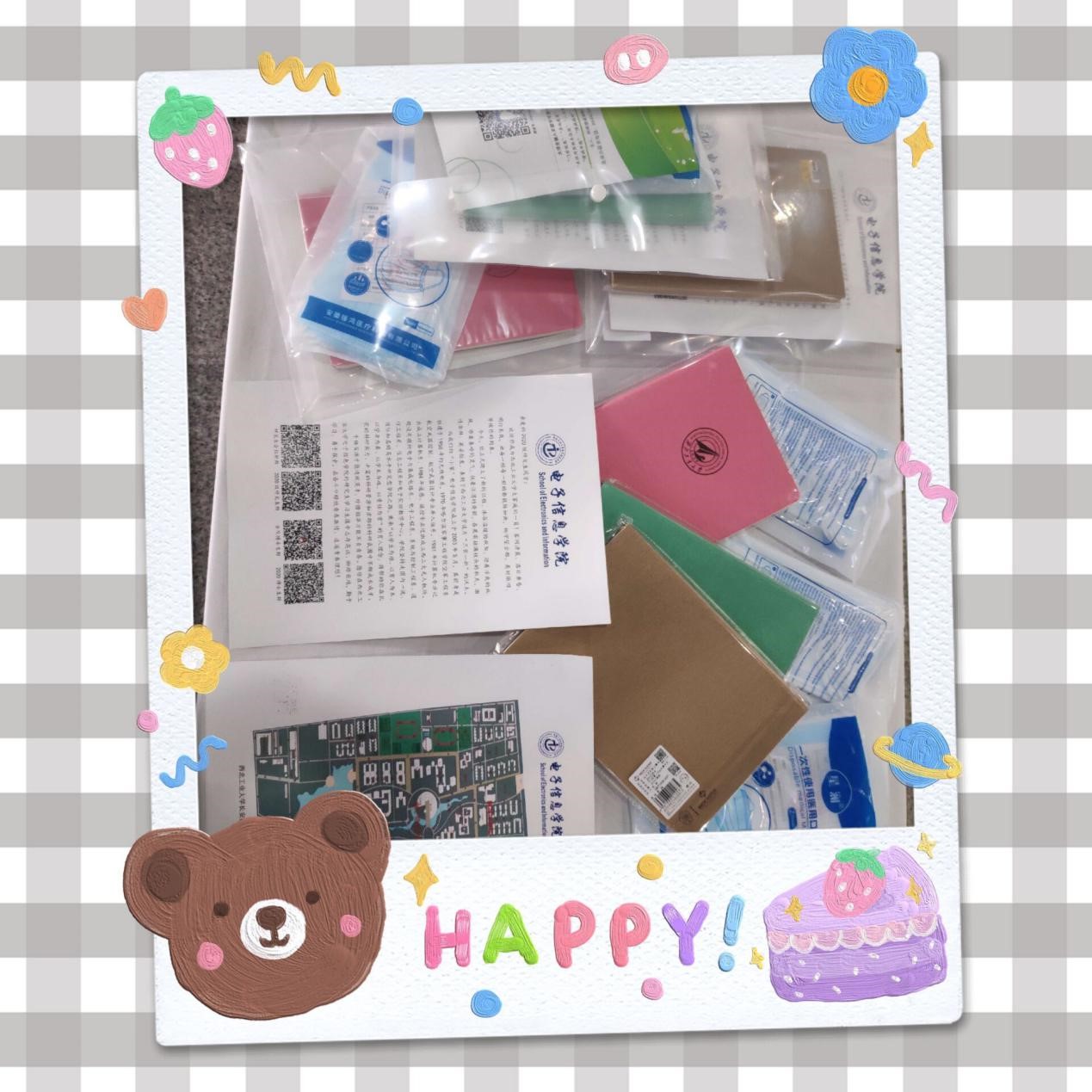领取一卡通、选课手册等物品以及口罩和手套等防疫物资