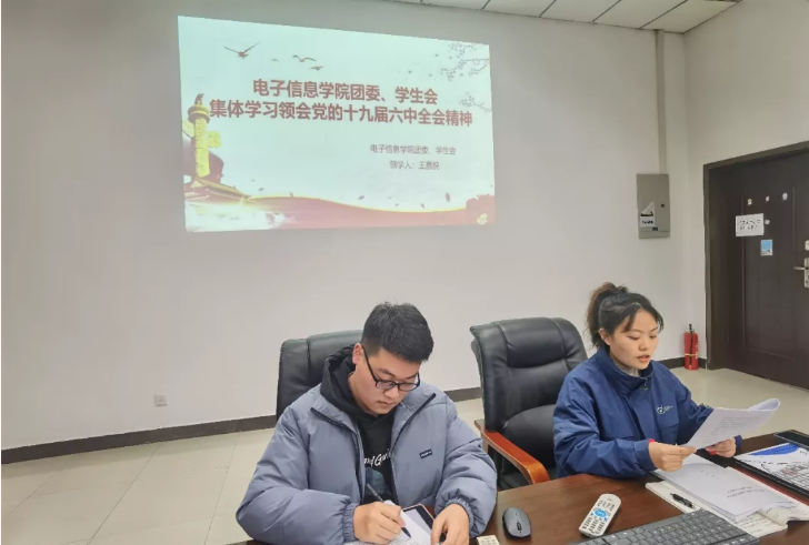 11月16日晚,英国上市公司官网365团委、学生会在英国上市公司官网365楼119会议室召开专题会议,学习传达了党的十九届六中全会精神。英国上市公司官网365团委书记王嘉悦参加会议并担任领学人,英国上市公司官网365团委、学生会全体干部参加学习。会议由英国上市公司官网365学生会执行主席刘龙主持。