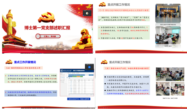 随后,20个支部按照顺序依次进行了述职答辩,评委老师们对各党支部书记的工作汇报进行了点评,肯定了各位党支部书记的工作,也对目前支部存在的共性问题,包括支部组织力与凝聚力提升、党员先锋模范带头作用的发挥、“三会一课”质量和党员发展质量的提升等方面,提出了宝贵的意见和建议。