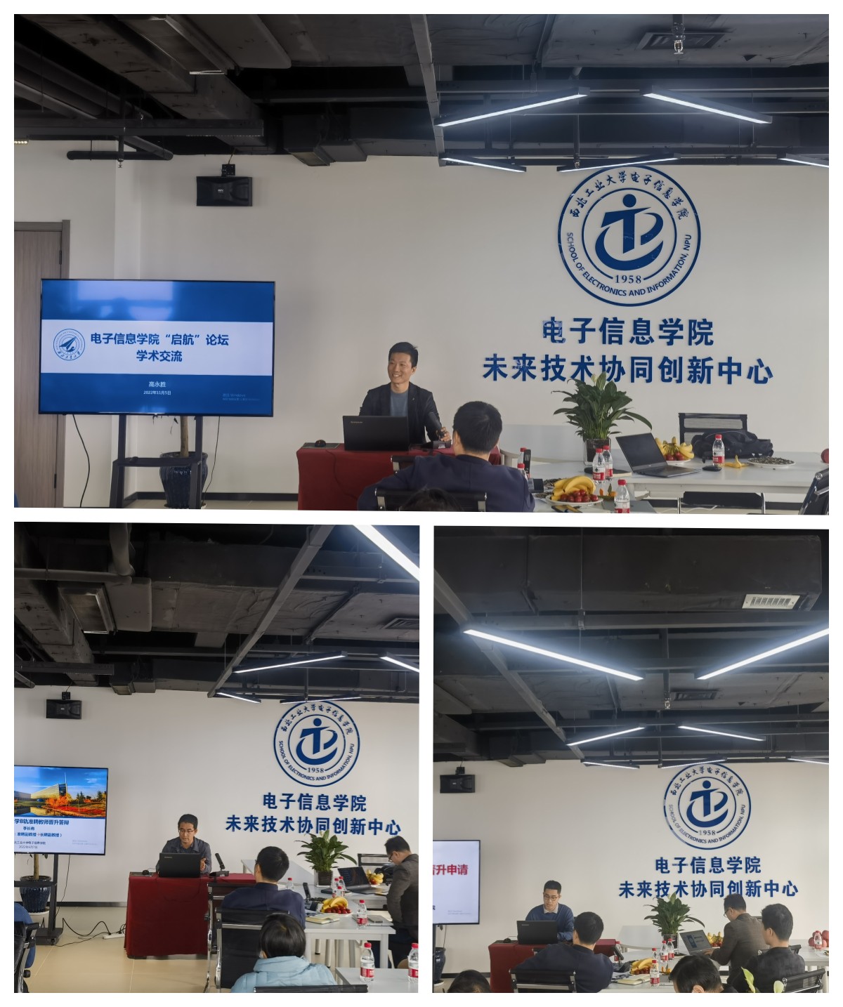 院长助理李长侑对“E路启航”论坛的相关情况进行了介绍,并与青年教师陶明亮、高永胜一起做了学术汇报。他们分别从研究方向、近期成果等方面介绍了科研和学术发展过程中的成长经验,还分享了“从准聘副教授转长聘副教授竞聘”的演讲,深度还远了竞聘现场状态,参会的青年教师都被报告人自信的汇报状态所鼓舞。