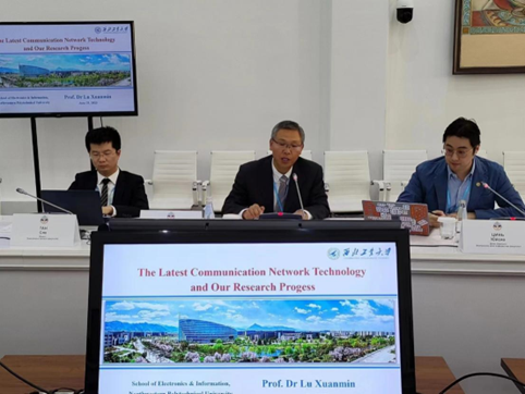 研讨会开幕式上,阿里法拉比哈萨克斯坦国立大学校长图伊梅巴耶夫、我国驻阿拉木图总领事蒋薇、我校国际合作处处长张富利依次致辞。随后,中哈双方学院代表依次作学院报告。我院院长助理秦雨潇围绕师资队伍、人才培养、科学研究、学科建设等方面对学院进行了详细的介绍,并表示此次活动有助于高质量推进分校建设,英国上市公司官网365将以此为契机,充分发挥学科优势,在学校的统一指导下,详细制定培养方案,高效推进分校建设。学院教师代表卢选民副教授作了题为The latest communication network technology and our research progress的专题报告,阐明了通信网络技术的重要意义,并展望了当前的研究热点及未来发展方向。